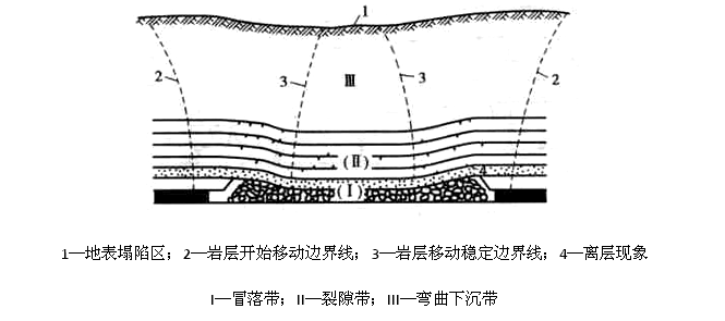 圖 3? 采空區(qū)上覆巖層三帶示意