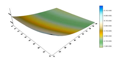 從采空區(qū)中心壓實區(qū)域到靠近采空區(qū)邊界的碎脹系數(shù)取 值為1.1~16。將對采空區(qū)不同地點所采煤樣的研究得出的粒徑和孔隙率數(shù)據(jù)帶入公式,再將所求解與煤樣所在采空區(qū)的位置進(jìn)行繪制采空區(qū)煤體的滲透率分布圖從采空區(qū)煤體滲透率的分布圖可以看出滲透率變化比較規(guī)律,靠近工作面比較大,遠(yuǎn)離工作面比較小,在工作面的的傾斜方向變化不大?! ?/span>