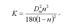 由多孔介質(zhì)的 Carman 公式,滲透率的計算公式為: