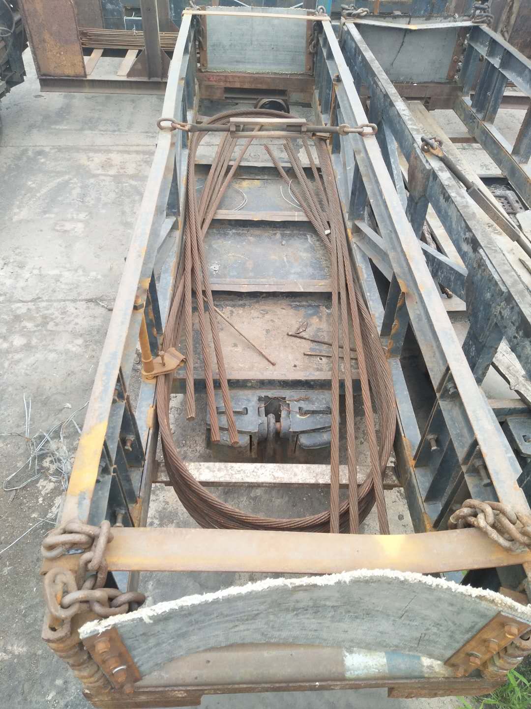 曉南礦現(xiàn)用錨索規(guī)格為5.2米、6.2米、7.2米三種長(zhǎng)度,由于受副井罐籠尺寸限制,裝載,運(yùn)輸6.2米及7.2米的錨索時(shí)通常采用盤(pán)“8”字型裝入4.2米長(zhǎng)的叉車(chē)中入井。裝卸車(chē)時(shí)錨索彈性非常大、需4人同時(shí)操作才能完成,錨索頭由于受力原因極易彈出傷人,且錨索在裝卸過(guò)程中容易出現(xiàn)劈頭現(xiàn)象。