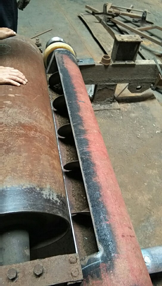 為了避免浮貨在膠帶輸送機尾輪周圍堆積,影響膠帶輸送機的安全運行,曉南礦自行設計并制作了膠帶輸送機尾輪自動除貨裝置,該裝置安設在膠帶輸送機尾輪前方,由蛟龍片、傳動軸,摩擦輪、外殼及固定裝置組成。摩擦輪和皮帶尾輪緊密接觸,尾輪旋轉的同時依次帶動摩擦輪和蛟龍片旋轉,在膠帶輸送機運行時,可以自動將尾輪前方的浮貨及時地清除到外幫,有效的避免了浮貨在尾輪周圍堆積,保證了膠帶輸送機的安全可靠運行。該裝置投入使用后,實際效果良好。