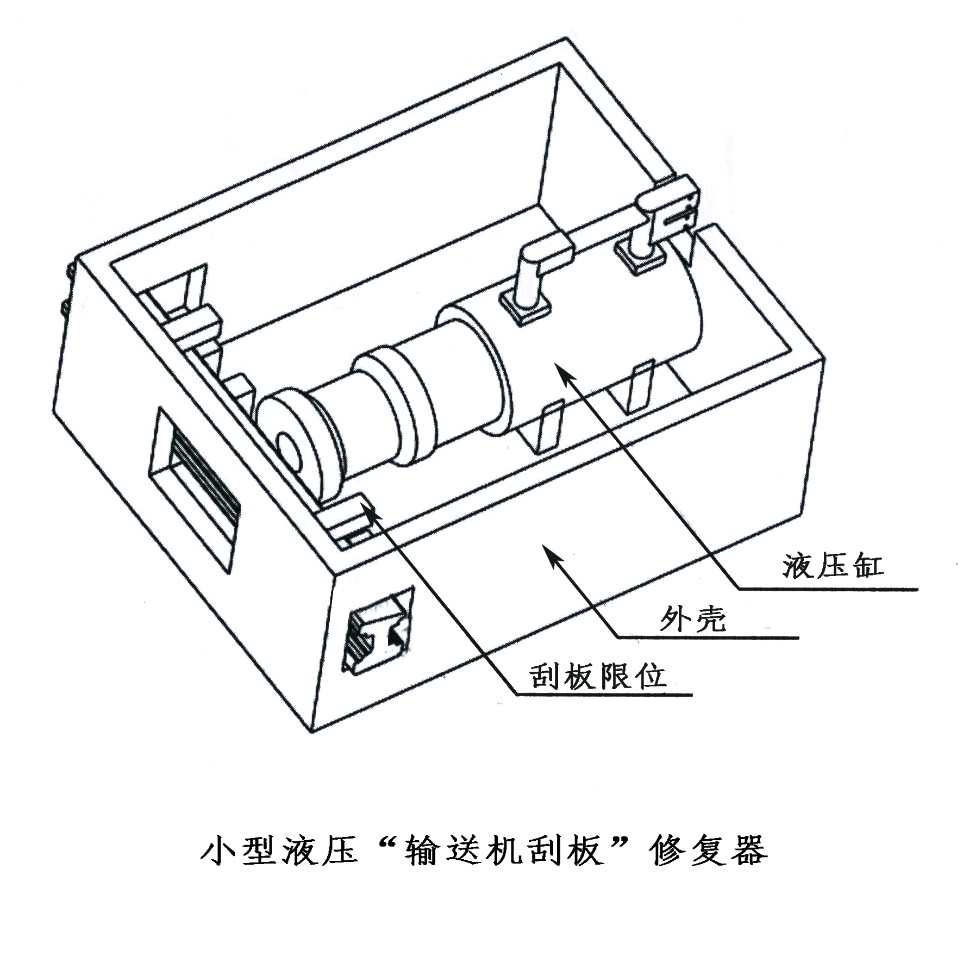 刮板式輸送機是煤礦井下生產(chǎn)過程中的主要設(shè)備之一,應(yīng)用范圍廣泛。在日常生產(chǎn)中由于工作環(huán)境惡劣,經(jīng)常會出現(xiàn)輸送機刮板扭曲變形的狀況,造成鏈輪磨損加快,影響輸送機正常工作。為此,需經(jīng)常更換受損變形的輸送機刮板,能修復(fù)的需升井利用專業(yè)修復(fù)工具進行修復(fù)。為了減少新品投入,降低升入井的運輸成本,曉南礦研制并應(yīng)用了“小型液壓‘輸送機刮板’修復(fù)器”。該裝置的基本結(jié)構(gòu)是由外殼、刮板限位裝置和液壓缸組成,采用煤礦綜機設(shè)備常規(guī)液壓動力源為驅(qū)動力。具有結(jié)構(gòu)簡單、方便耐用、故障率低等特點。實現(xiàn)了受損刮板就地修復(fù),直接復(fù)用的目的。該裝置在曉南礦SE1402運順掘進工作面施工中得到應(yīng)用,應(yīng)用效果良好。