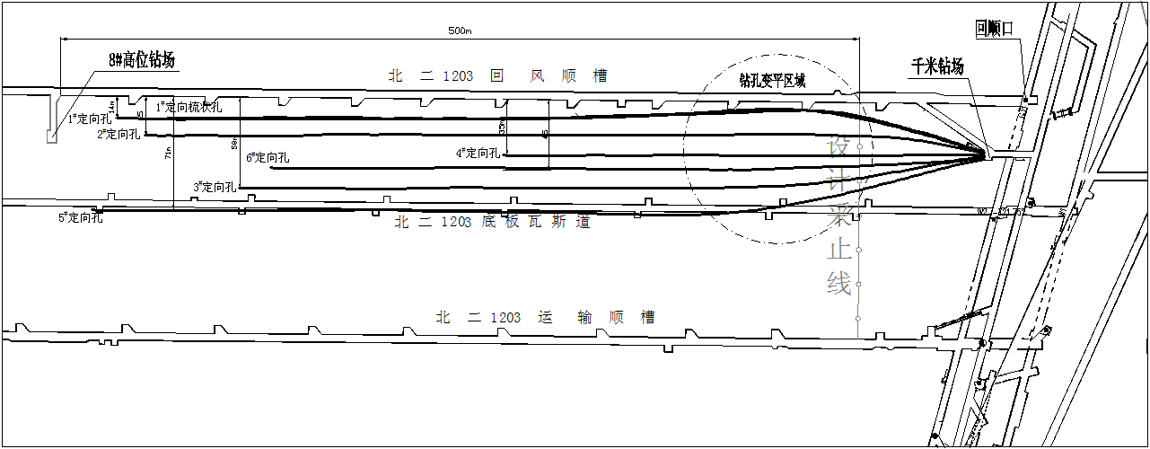 ⑴ 高位水平長鉆孔設(shè)計