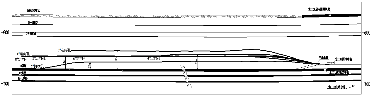 圖2 ?高位水平長鉆孔剖面布置示意圖