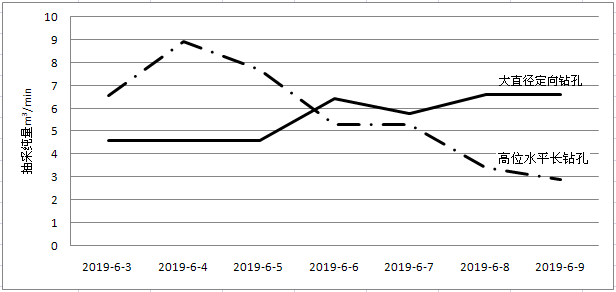 圖8 ?大直徑定向鉆孔與高位水平長鉆孔對比曲線