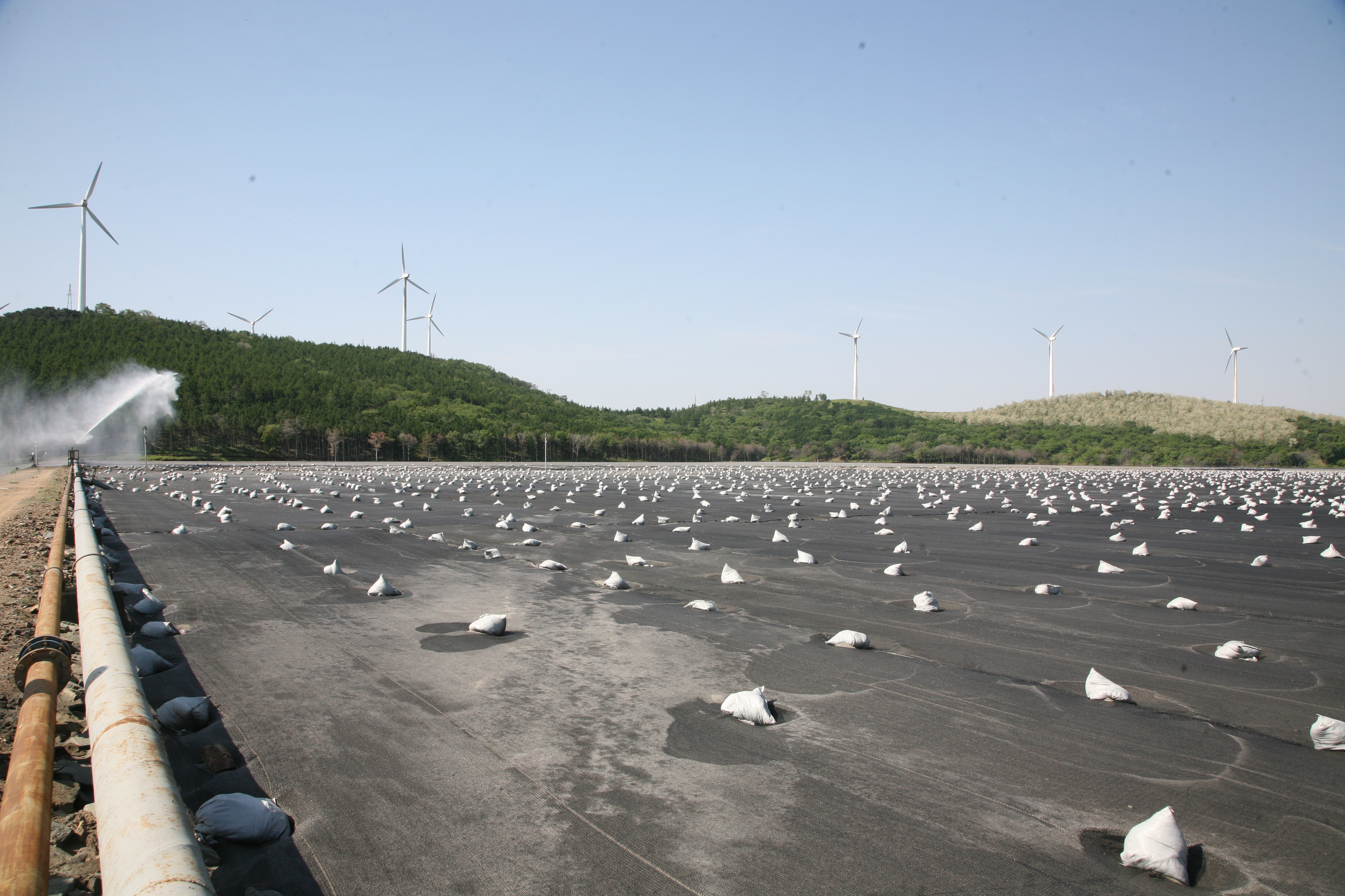 熱電廠防塵治理后的鎖龍溝貯灰場(chǎng)。