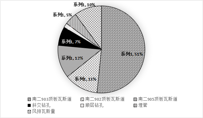 南二九層903區(qū)段煤層瓦斯壓力最大值為620KPa,原始煤層瓦斯含量為6.35m3/t,南二采區(qū)9煤層南二903區(qū)段無煤與瓦斯突出危險(xiǎn),采煤期間瓦斯絕對(duì)涌出量實(shí)測(cè)為41.6m3/min。