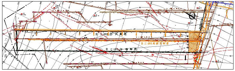分析原因?yàn)椋罕倍?/span>1203回順32#高位鉆場(chǎng)鄰近工作面鉆孔衰減,而后續(xù)的31#、30#鉆場(chǎng)斜交鉆孔設(shè)計(jì)垂高偏高,鉆孔均沒(méi)有與裂隙帶連通。30#鉆場(chǎng)鉆孔設(shè)計(jì)因要躲開(kāi)32#高位鉆場(chǎng)口頂板錨桿錨索,致使垂高偏高,沒(méi)有發(fā)揮作用;此時(shí)29#高位鉆場(chǎng)未開(kāi)始抽采,因而出現(xiàn)斷檔現(xiàn)象。因此,斜交鉆孔的合理層位選擇非常重要。