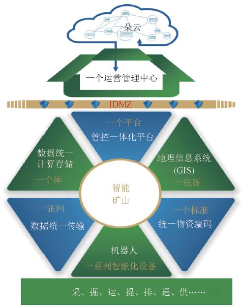 (8)“一朵云”指基于云平臺(tái)技術(shù)構(gòu)建的礦山私有云或公有云,主要應(yīng)用于集團(tuán)管控、產(chǎn)業(yè)鏈協(xié)同、政府監(jiān)管。