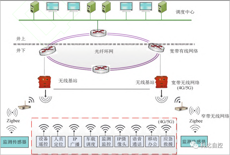 (2)“一張網(wǎng)”是融合有線寬帶與無(wú)線寬帶以及窄帶傳輸技術(shù)的礦山多源異構(gòu)網(wǎng),實(shí)現(xiàn)生產(chǎn)信息全面感知與高速通信。