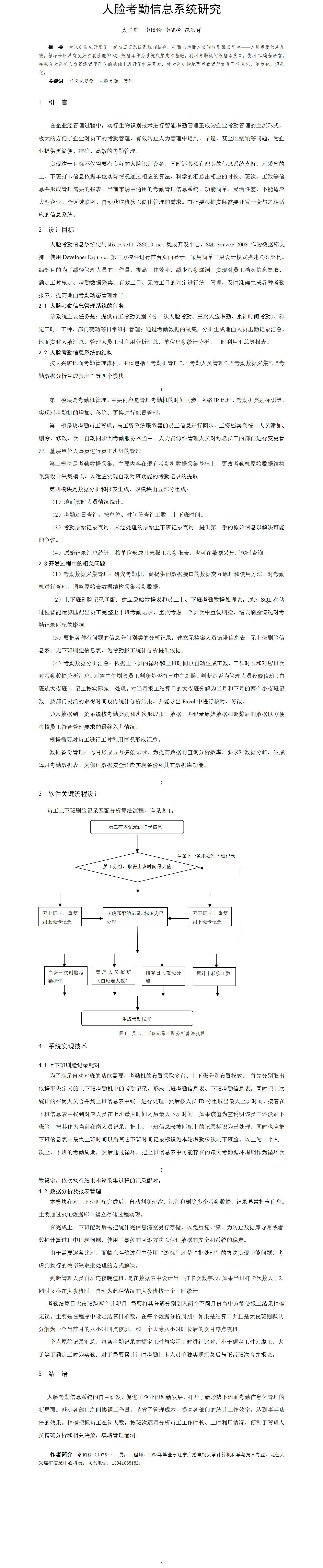 公司等級獎?wù)撐?--人臉考勤信息系統(tǒng)研究