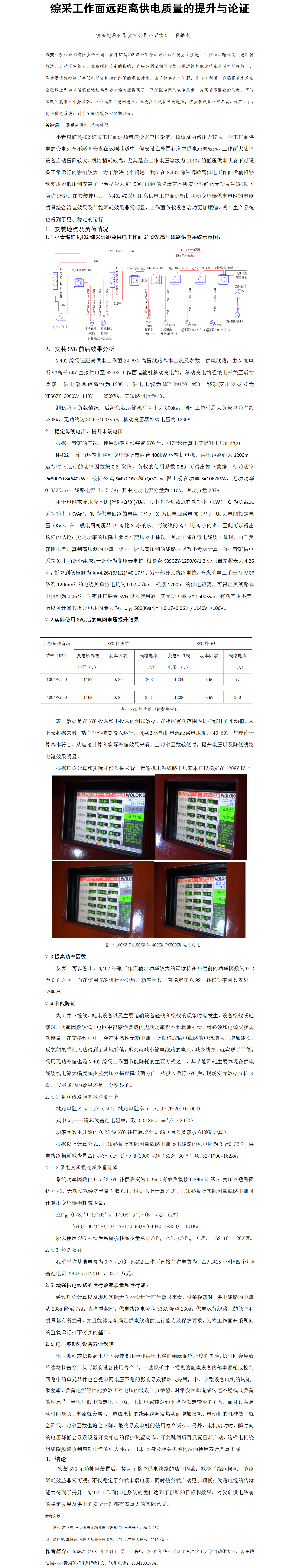 第48屆等級獎?wù)撐?--綜采工作面遠距離供電質(zhì)量的提升與論證