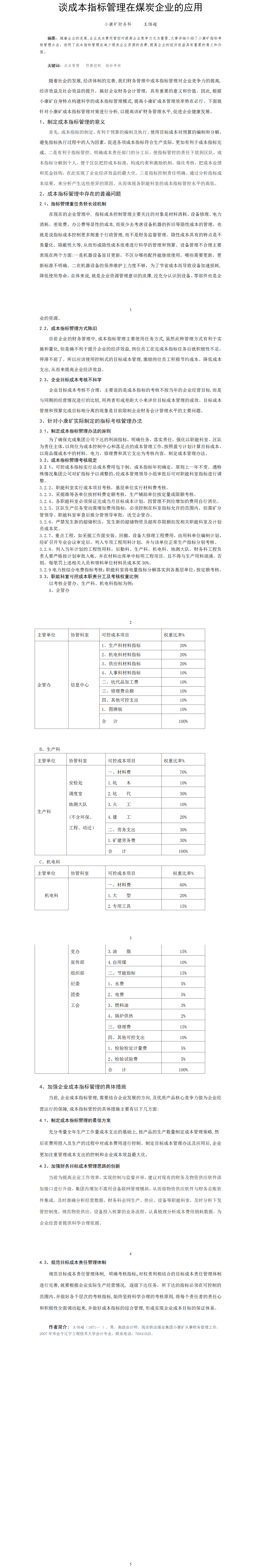 第48屆等級(jí)獎(jiǎng)?wù)撐?--談成本指標(biāo)管理在煤炭企業(yè)的應(yīng)用