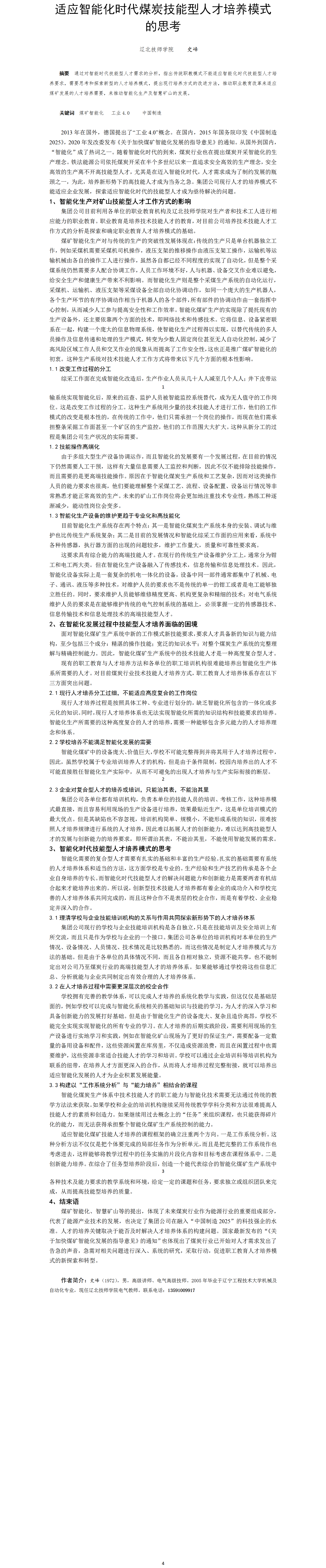 第48屆等級(jí)獎(jiǎng)?wù)撐?--適應(yīng)智能化時(shí)代煤炭技能型人才培養(yǎng)模式的思考
