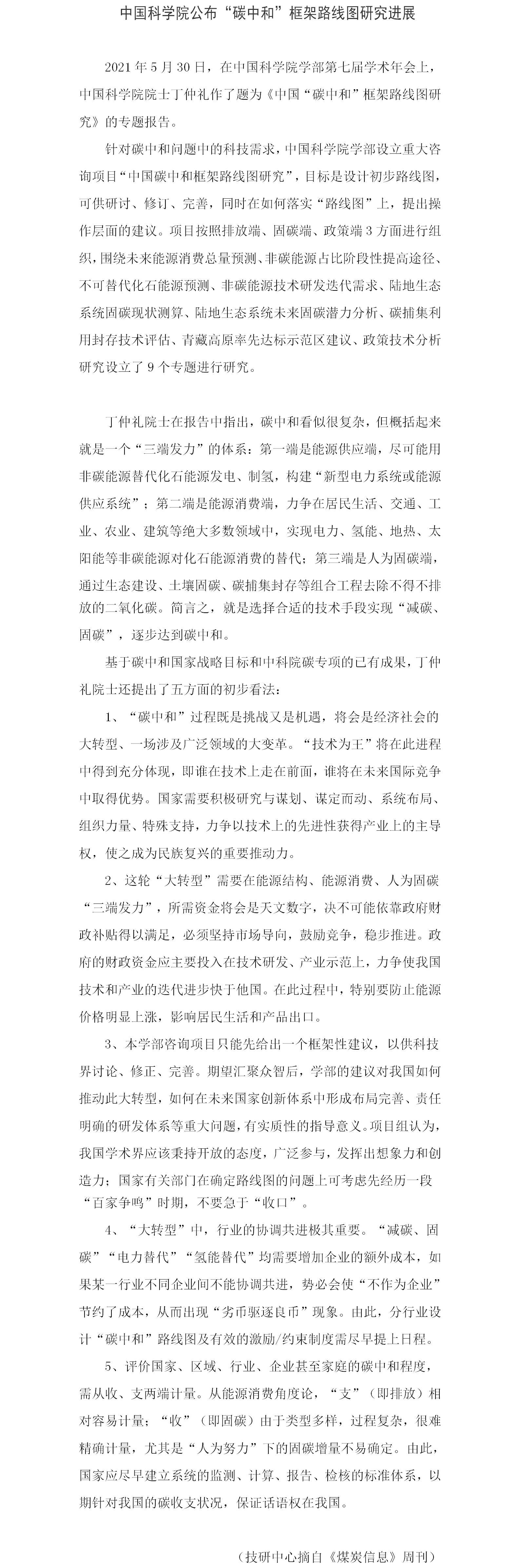 中國(guó)科學(xué)院公布“碳中和”框架路線圖研究進(jìn)展