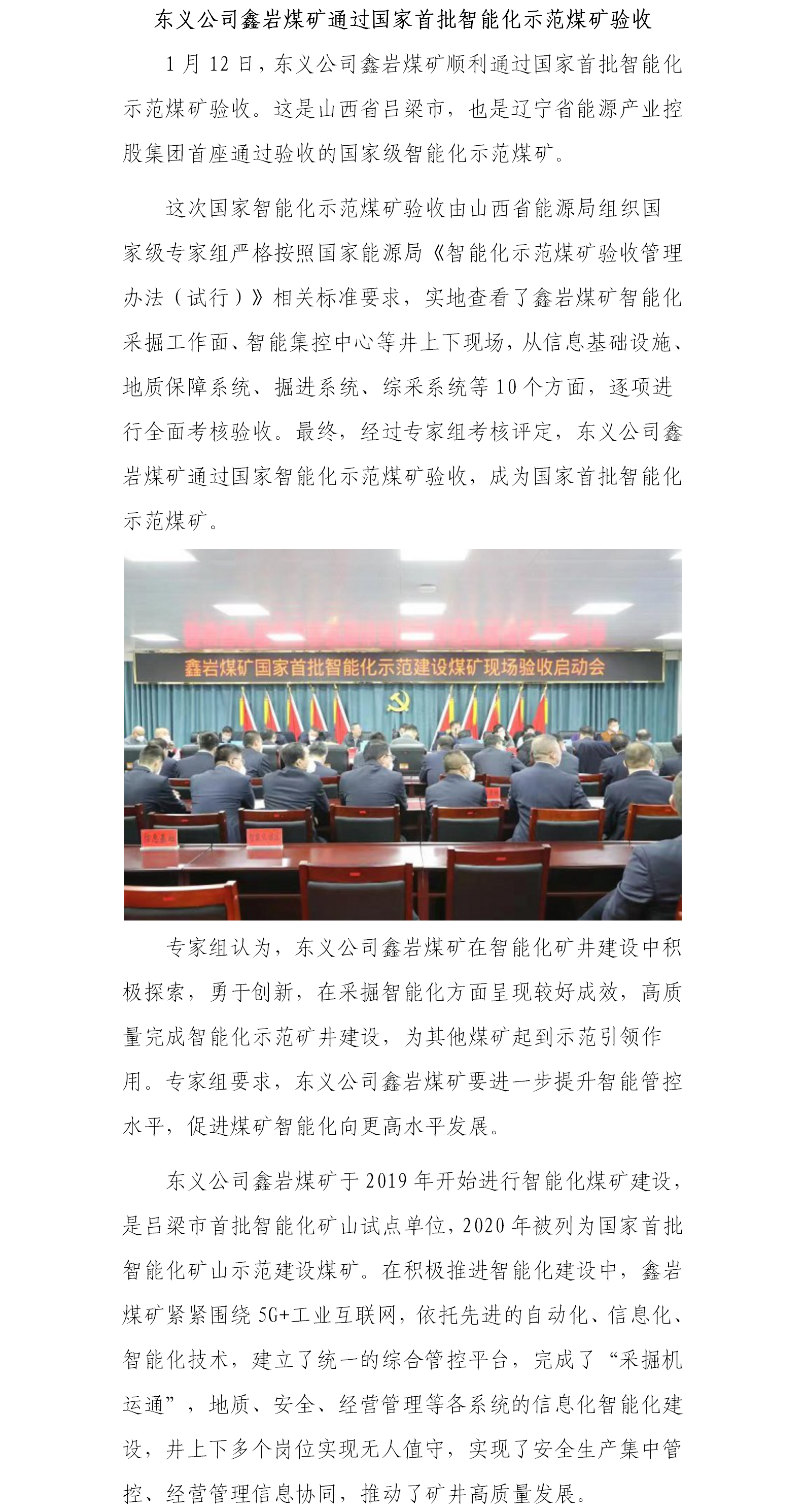 東義公司鑫巖煤礦通過(guò)國(guó)家首批智能化示范煤礦驗(yàn)收