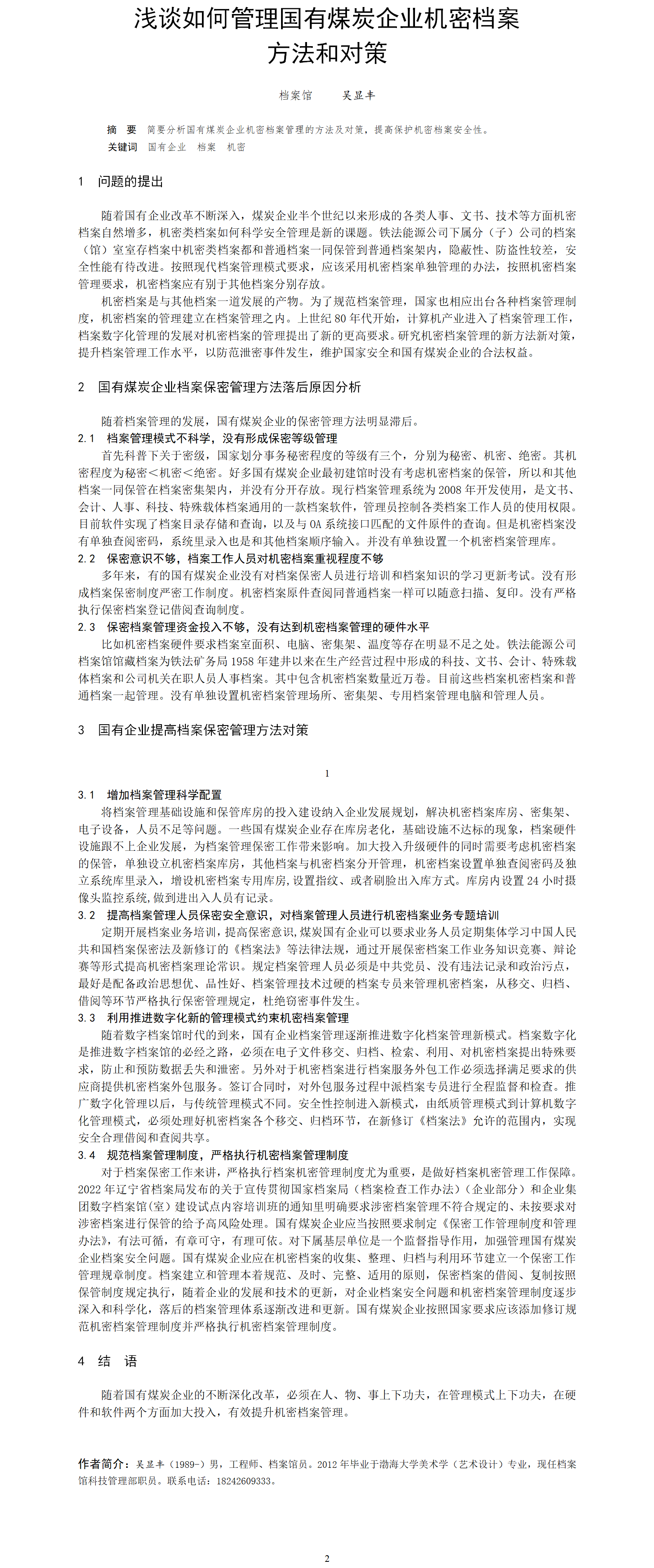 第54屆等級獎?wù)撐?--淺談如何管理國有煤炭企業(yè)機密檔案方法和對策