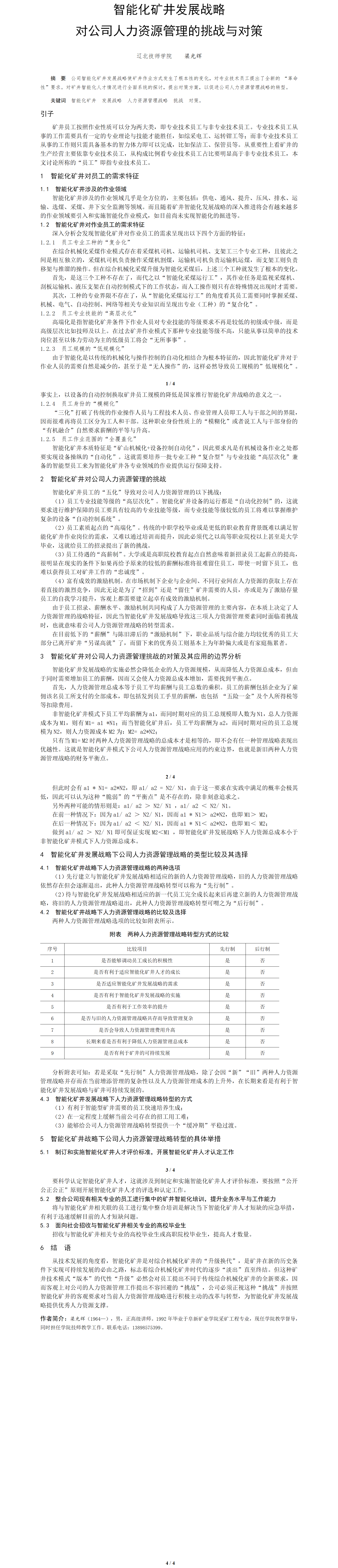 第54屆等級獎?wù)撐?--智能化礦井發(fā)展戰(zhàn)略對公司人力資源管理的挑戰(zhàn)與對策