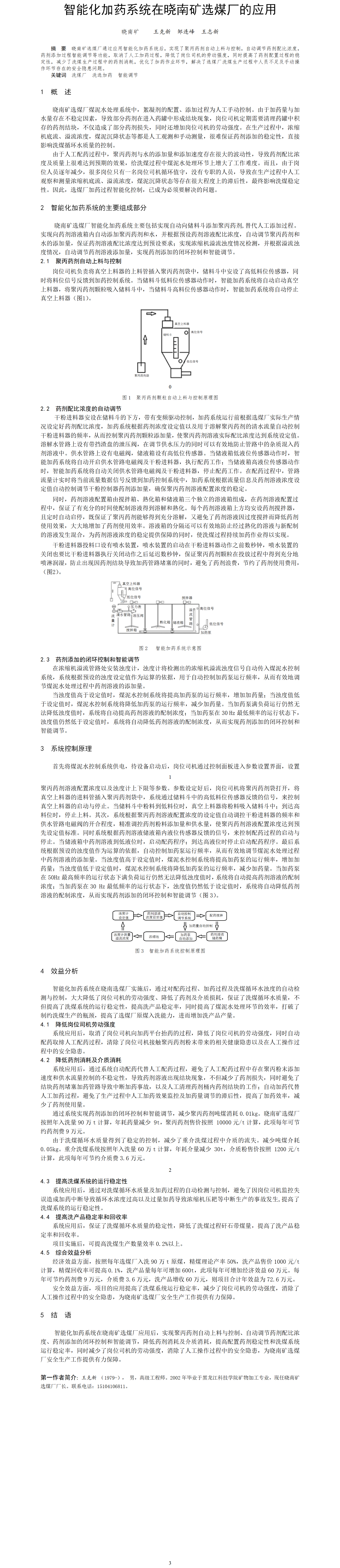第55屆等級獎?wù)撐?--智能化加藥系統(tǒng)在曉南礦選煤廠的應(yīng)用