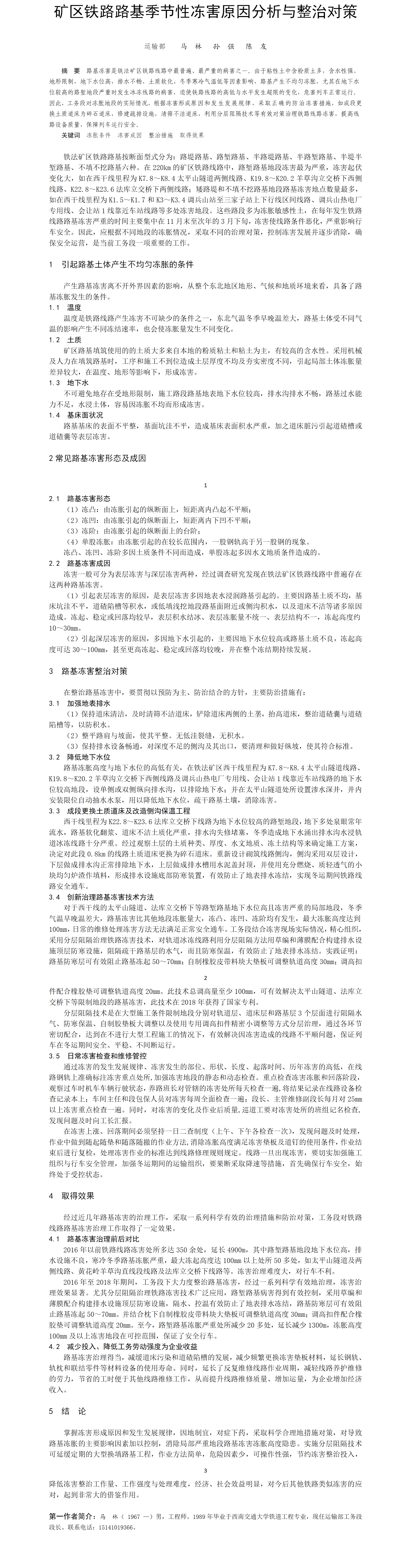 第55屆等級(jí)獎(jiǎng)?wù)撐?--礦區(qū)鐵路路基季節(jié)性凍害原因分析與整治對(duì)策