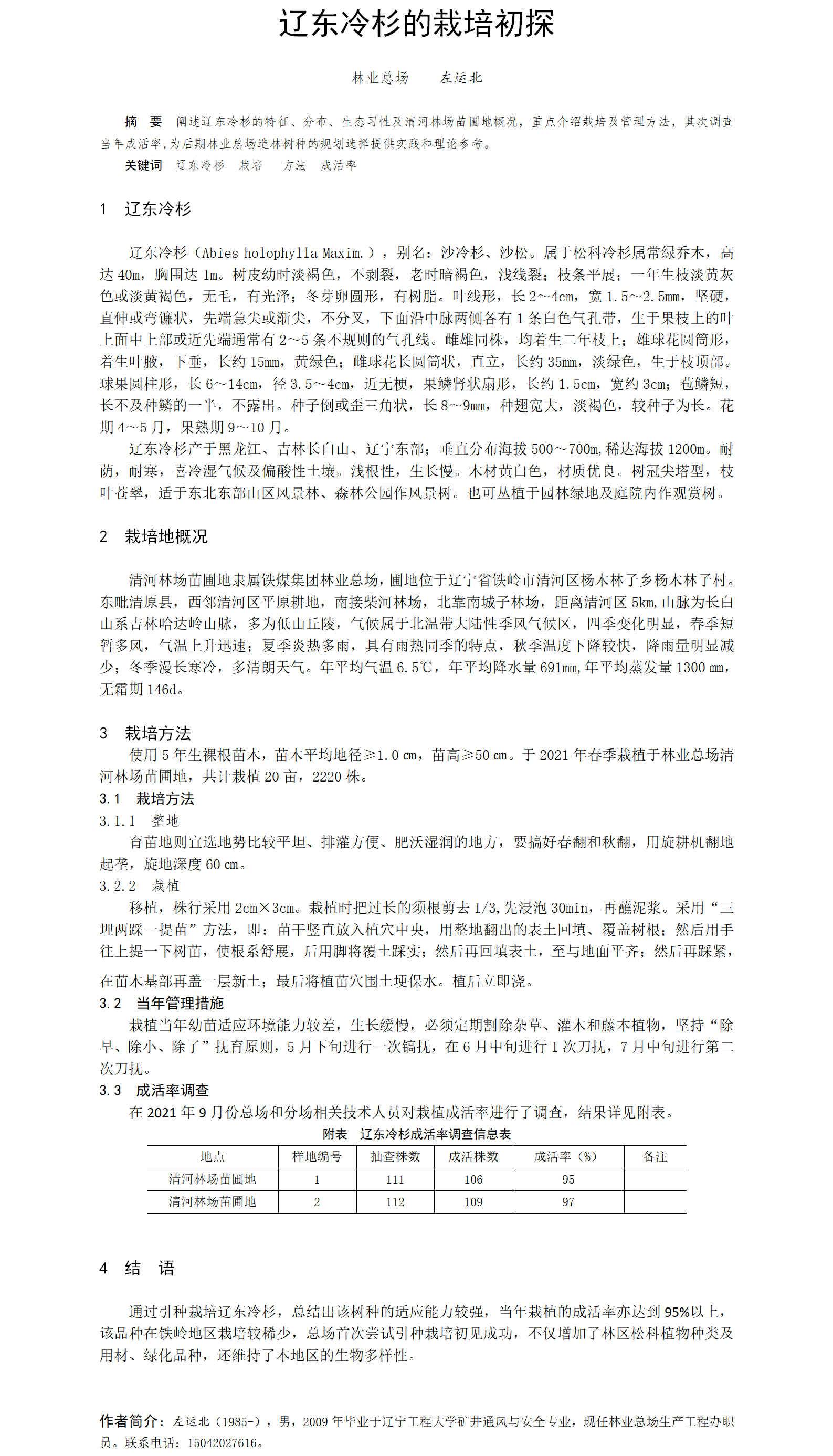 第55屆等級(jí)獎(jiǎng)?wù)撐?--遼東冷杉的栽培初探