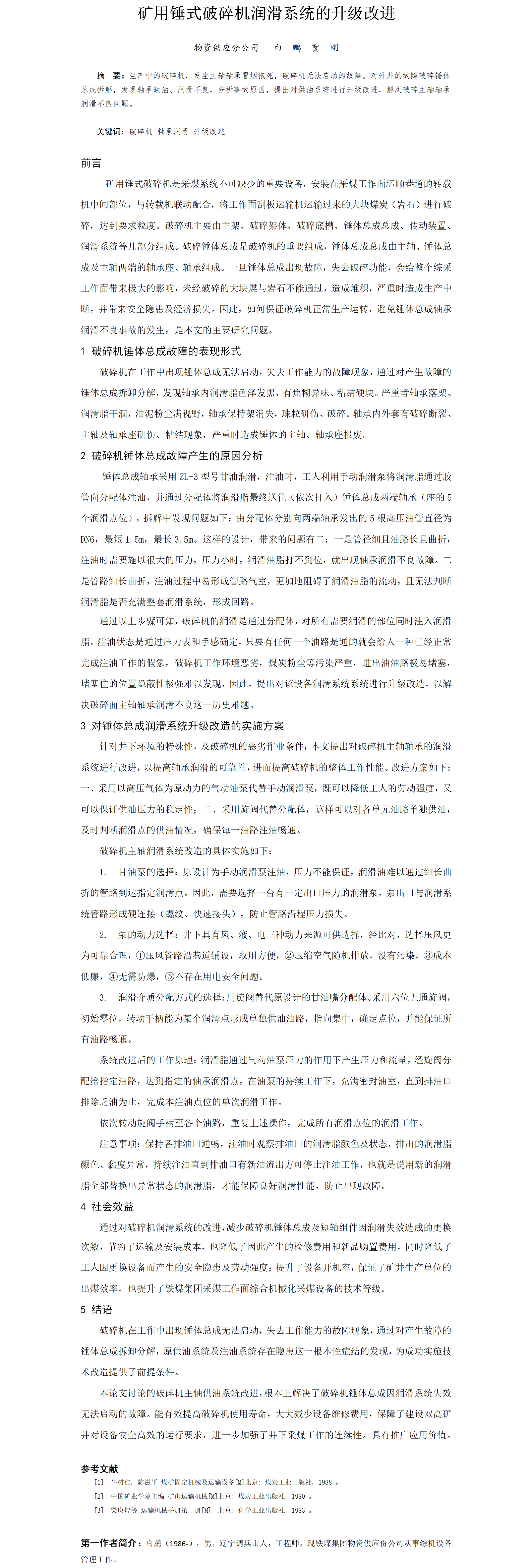第56屆等級獎?wù)撐?--礦用錘式破碎機潤滑系統(tǒng)的升級改進