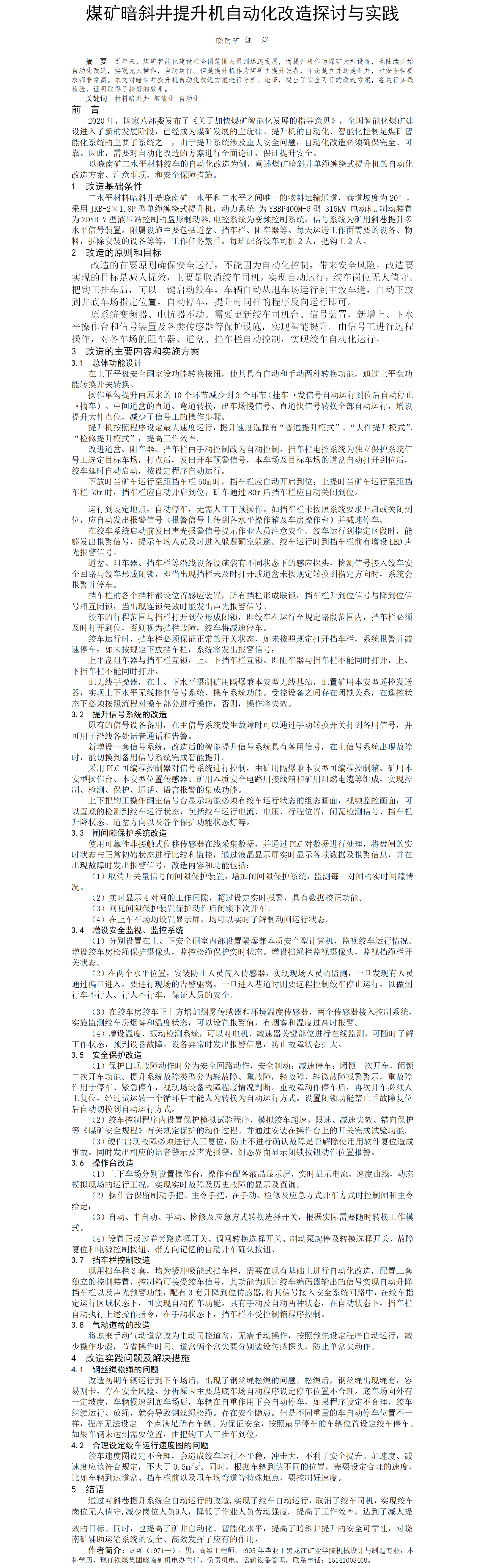 第56屆等級獎?wù)撐?--煤礦暗斜井提升機自動化改造探討與實踐