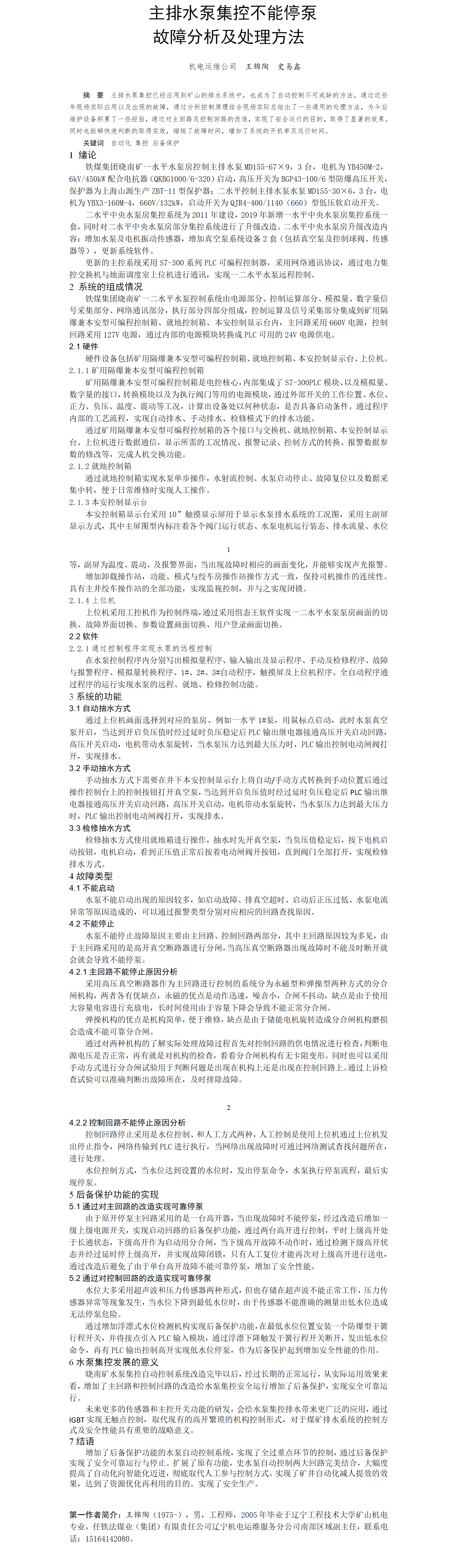 第56屆等級(jí)獎(jiǎng)?wù)撐?--主排水泵集控不能停泵故障分析及處理方法