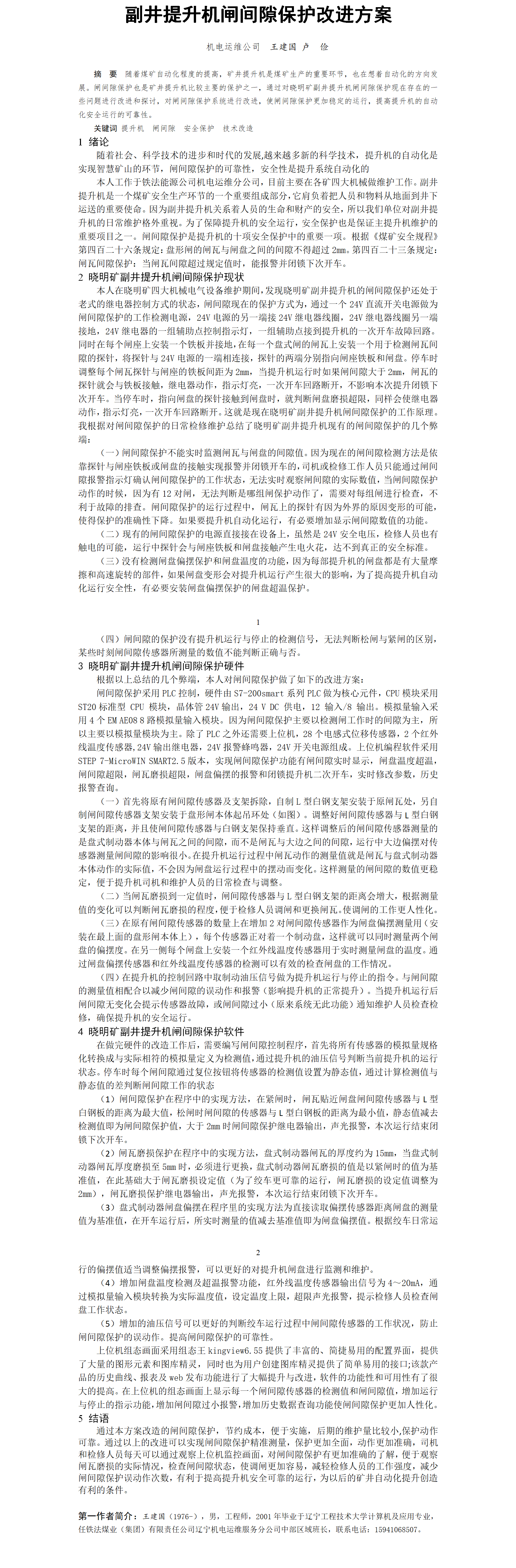 第56屆等級(jí)獎(jiǎng)?wù)撐?--副井提升機(jī)閘間隙保護(hù)改進(jìn)方案