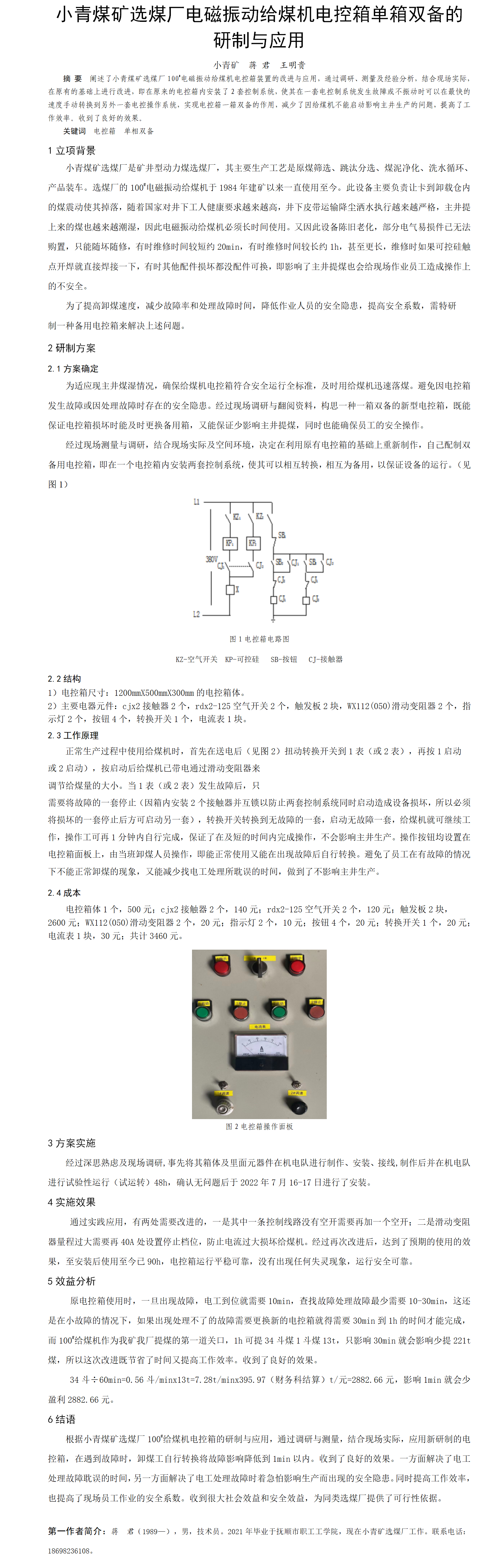 第56屆等級(jí)獎(jiǎng)?wù)撐?--小青煤礦選煤廠電磁振動(dòng)給煤機(jī)電控箱單箱雙備的研制與應(yīng)用