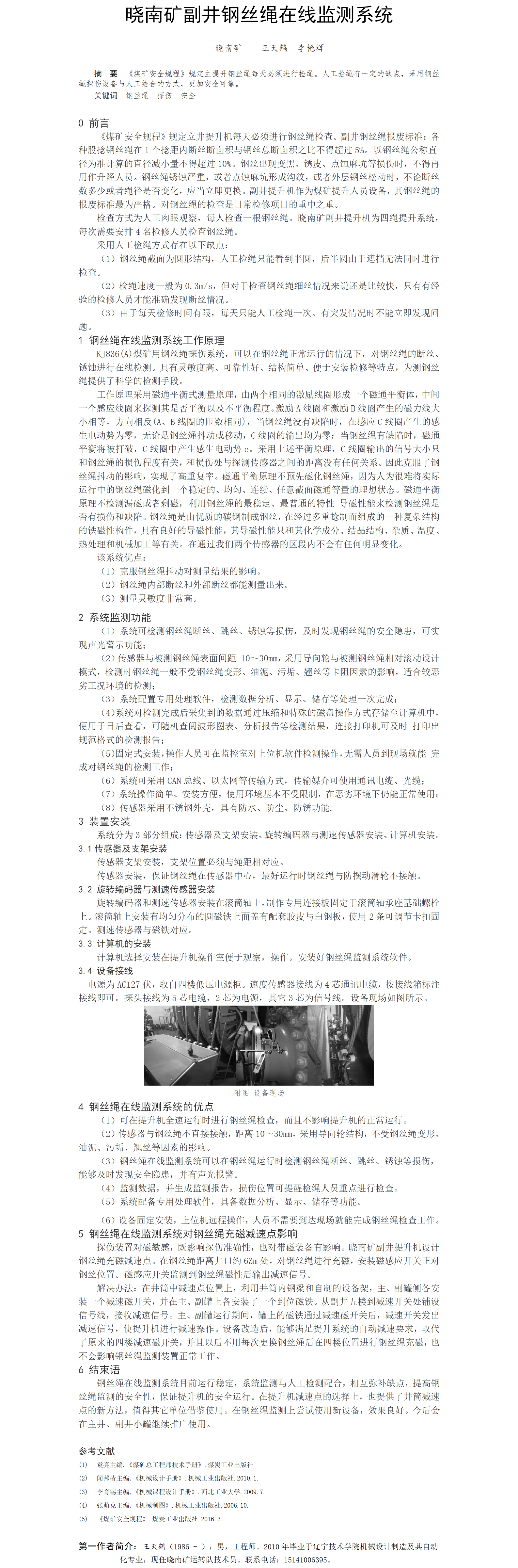 第56屆等級獎?wù)撐?--曉南礦副井鋼絲繩在線監(jiān)測系統(tǒng)