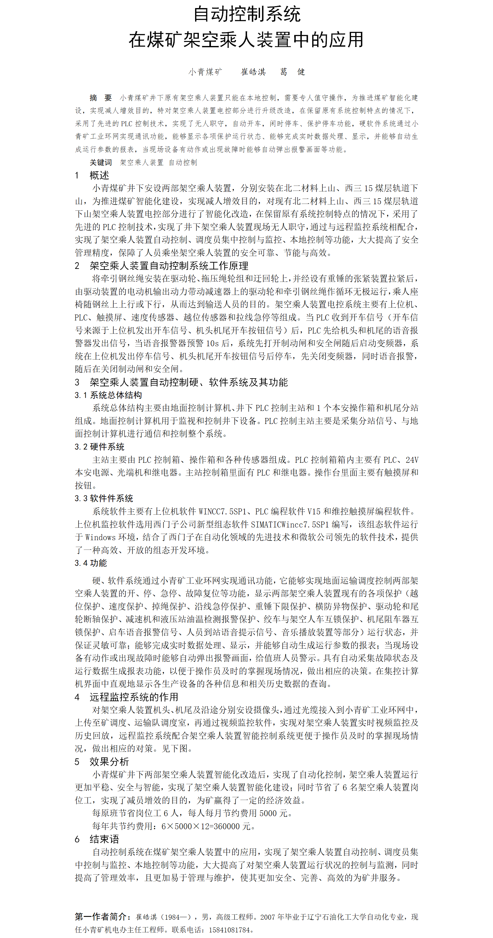 第56屆等級獎論文---自動控制系統(tǒng)在煤礦架空乘人裝置中的應用