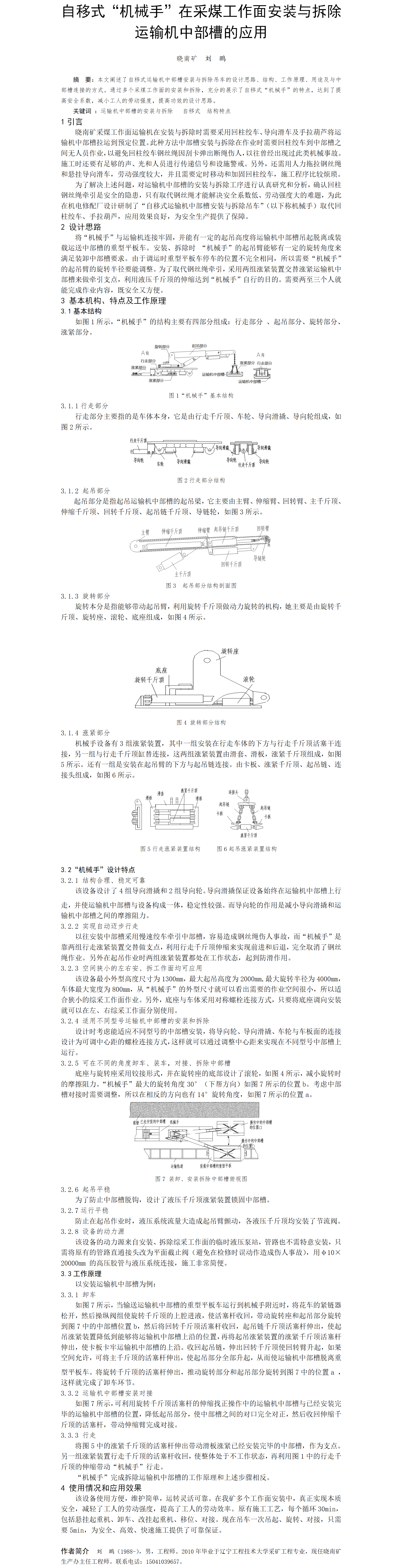 第57屆等級獎論文---自移式“機械手”在采煤工作面安裝與拆除運輸機中部槽的應用