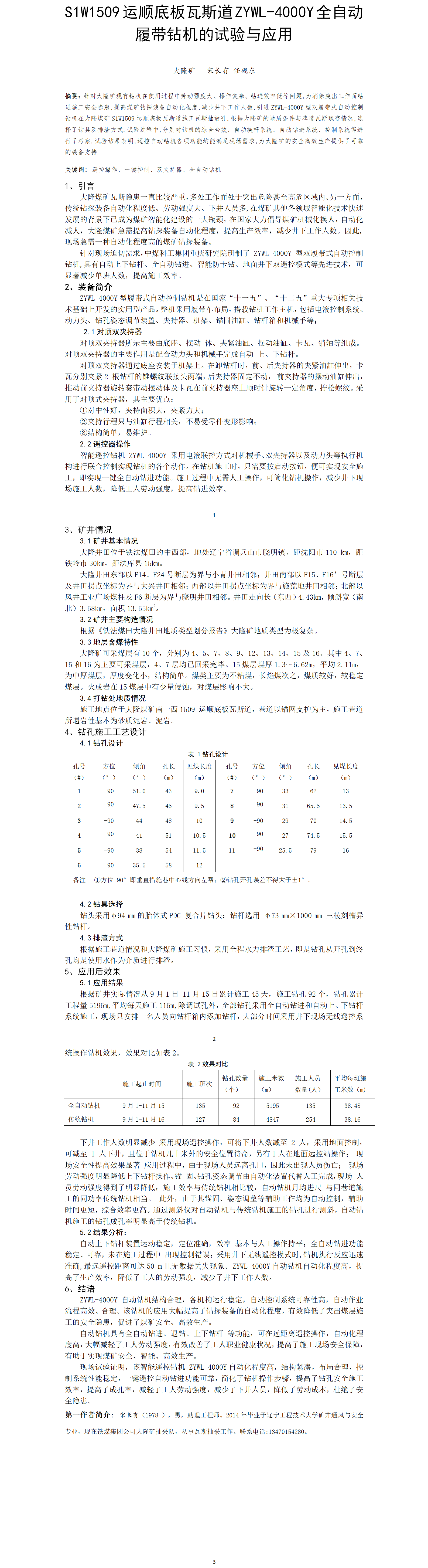 第57屆等級獎(jiǎng)?wù)撐?--S1W1509運(yùn)順底板瓦斯道ZYWL-4000Y全自動(dòng)履帶鉆機(jī)的試驗(yàn)與應(yīng)用