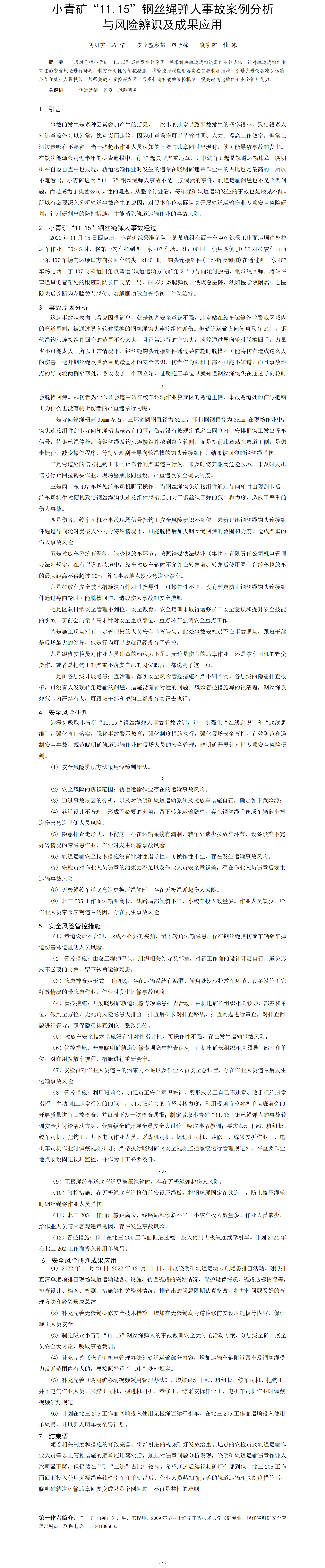 第58屆等級獎?wù)撐?--小青礦“11.15“鋼絲繩彈人事故案例分析與風(fēng)險辨識成果應(yīng)用