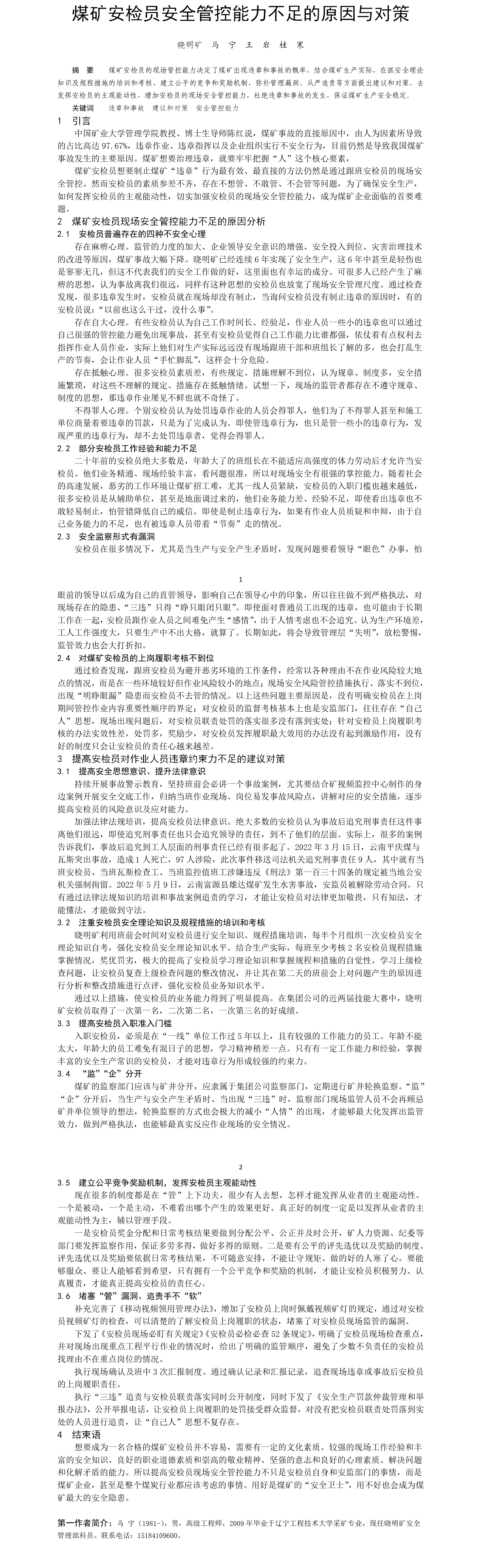 第58屆等級(jí)獎(jiǎng)?wù)撐?--煤礦安檢員安全管控能力不足的原因與對(duì)策