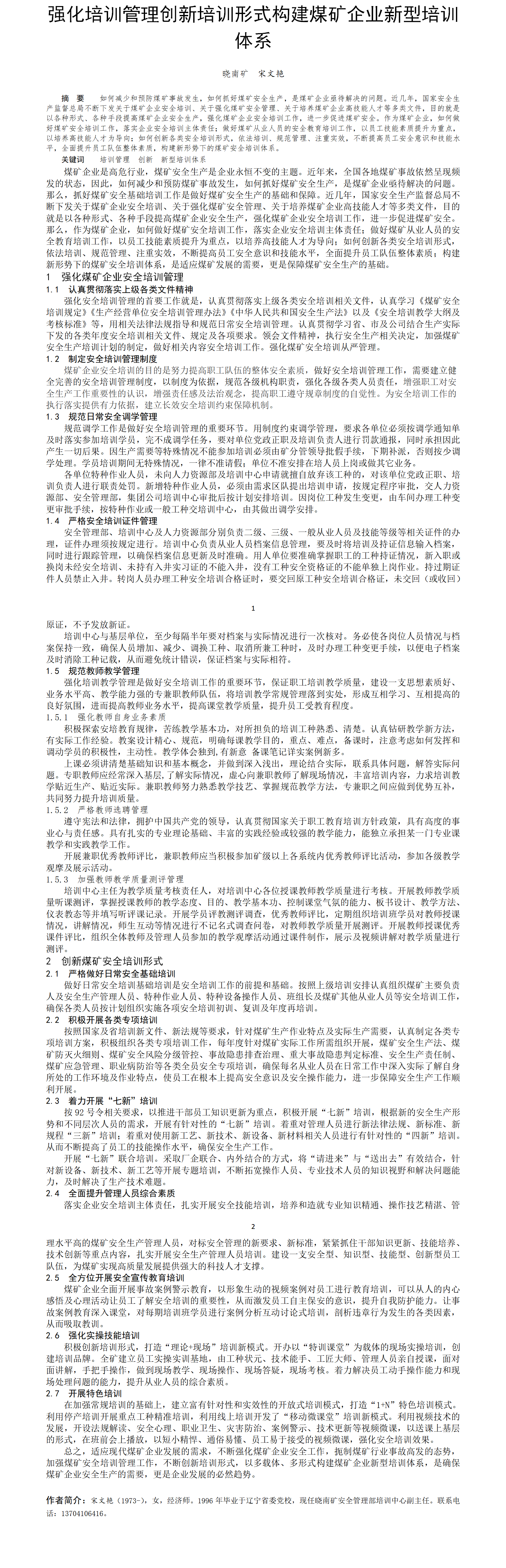 第58屆等級(jí)獎(jiǎng)?wù)撐?--強(qiáng)化培訓(xùn)管理創(chuàng)新培訓(xùn)形式構(gòu)建煤礦企業(yè)新型培訓(xùn)體系