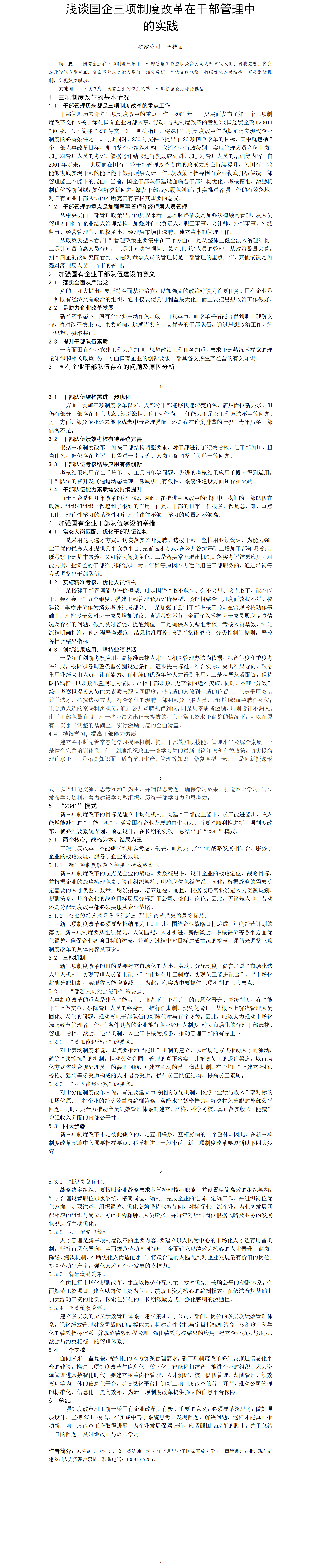 第58屆等級獎?wù)撐?--淺談國企三項制度改革在干部管理中的實踐