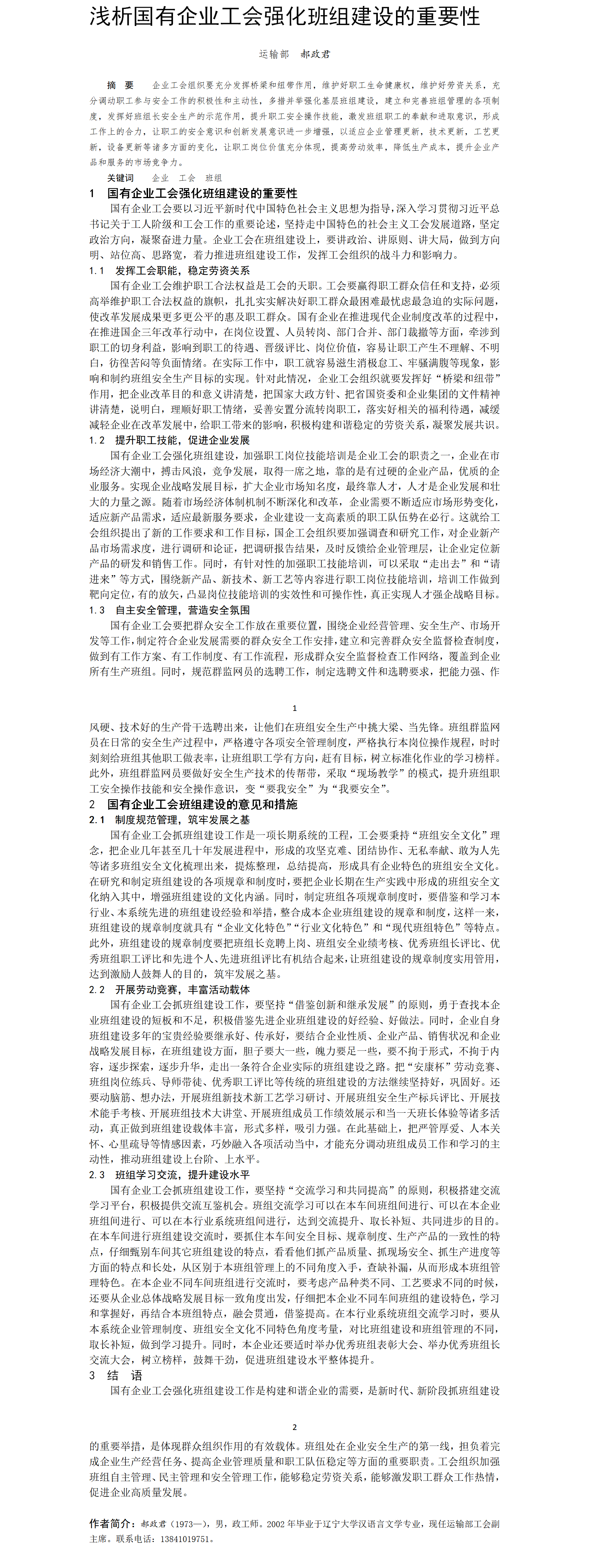第58屆等級(jí)獎(jiǎng)?wù)撐?--淺析國有企業(yè)工會(huì)強(qiáng)化班組建設(shè)的重要性