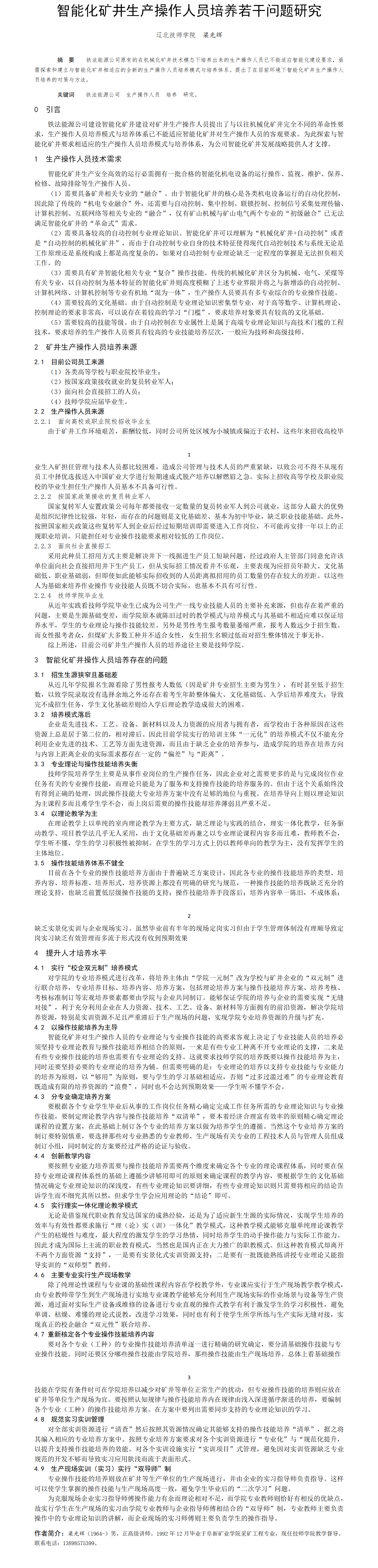 第58屆等級(jí)獎(jiǎng)?wù)撐?--智能化礦井生產(chǎn)操作人員培養(yǎng)研究