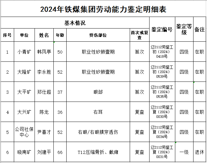 2024年12月鐵煤集團(tuán)勞動(dòng)能力鑒定結(jié)論公示
