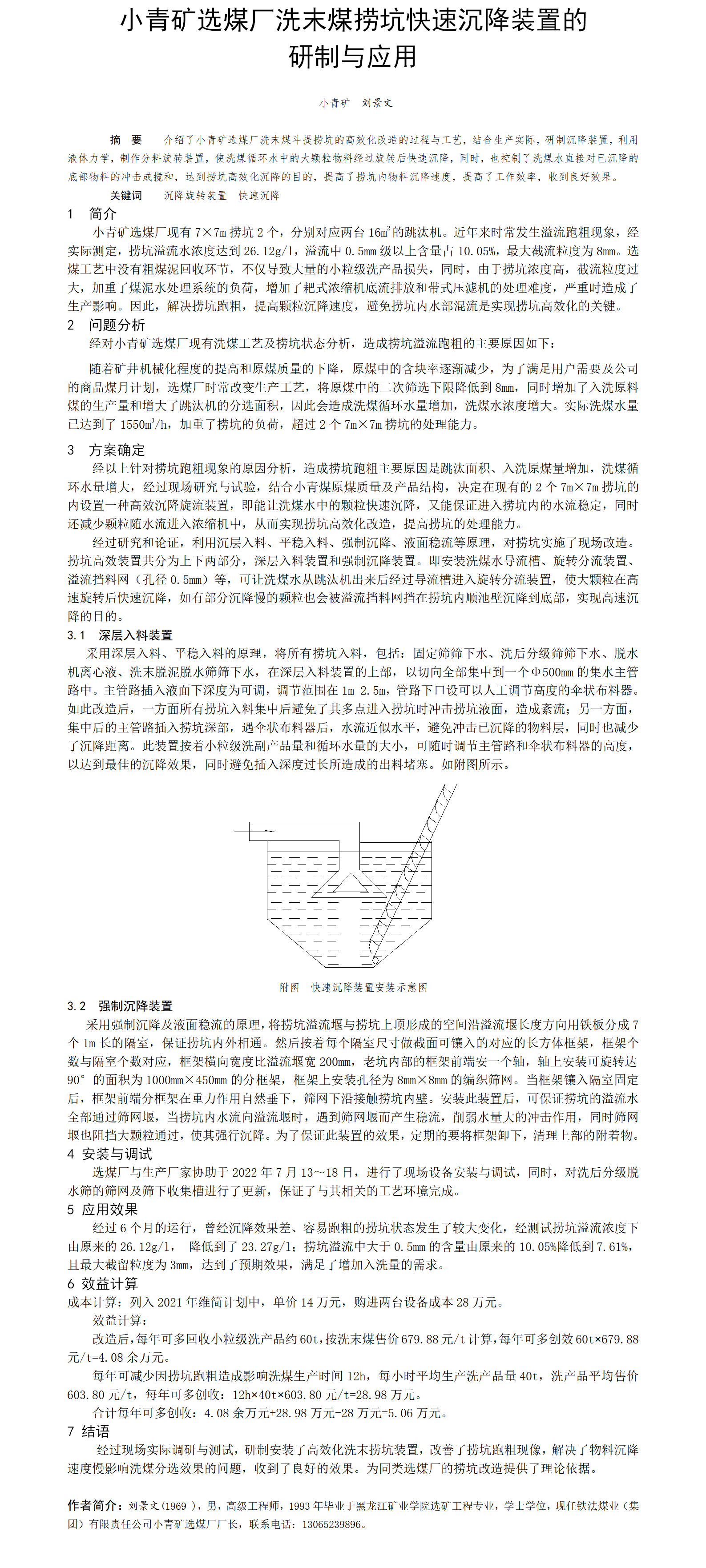 第59屆等級(jí)獎(jiǎng)?wù)撐?--小青煤礦選煤廠(chǎng)洗末煤撈坑快速沉降裝置的研制與應(yīng)用