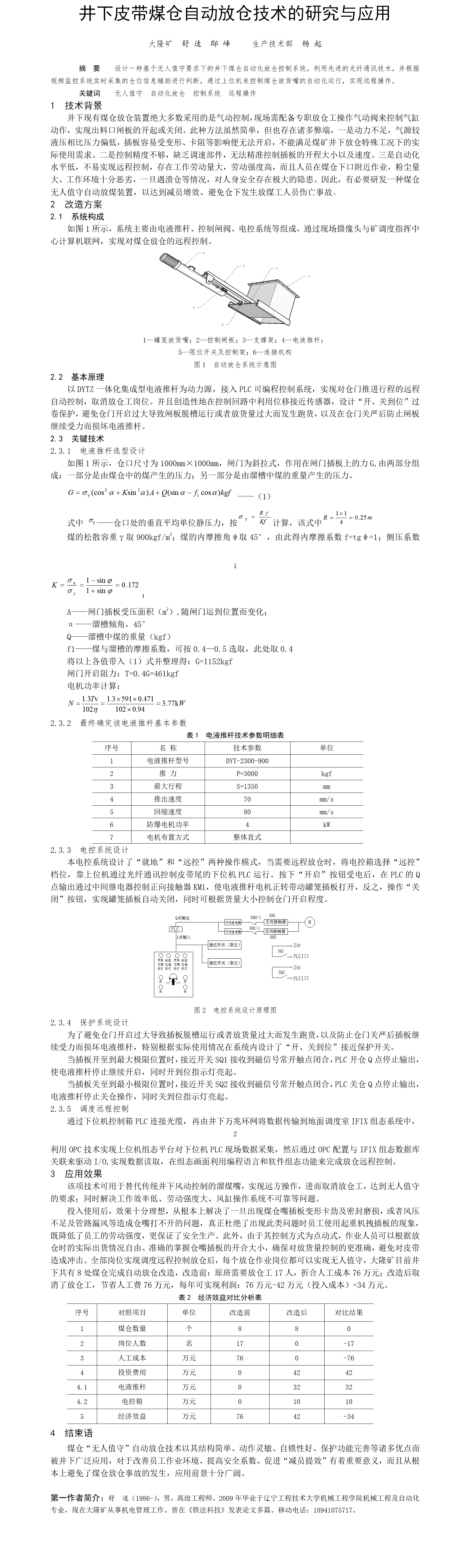 第60屆等級獎論文---井下皮帶煤倉自動放倉技術的研究與應用