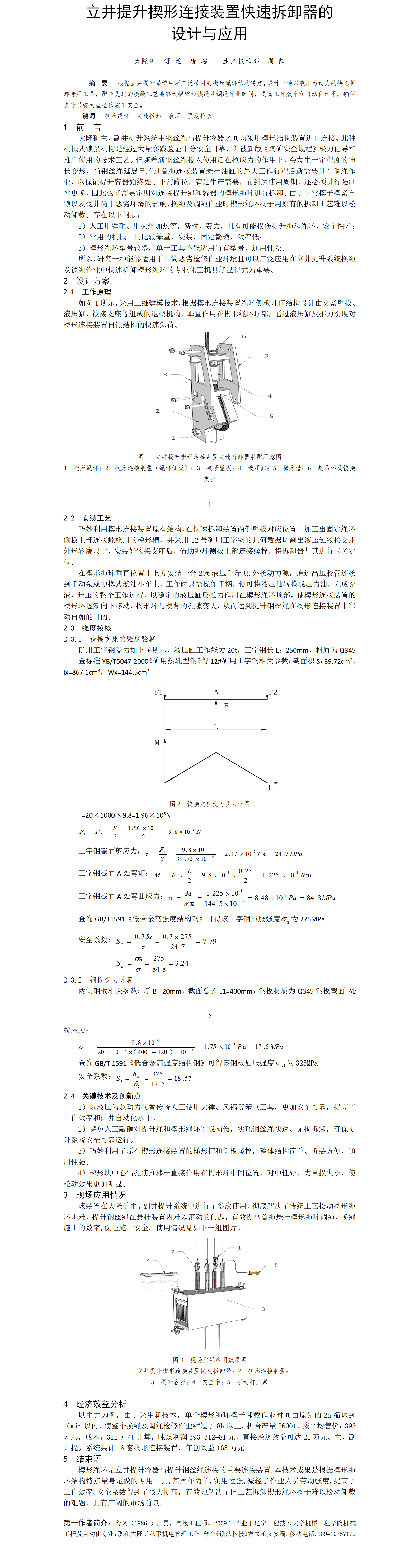第60屆等級獎?wù)撐?--立井提升楔形連接裝置快速拆卸器的設(shè)計與應(yīng)用