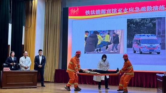 與會(huì)人員共同觀看了消防安全視頻宣傳片和公司賓館以情景劇模式開展的突發(fā)火災(zāi)事故應(yīng)急疏散演練。