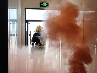 演練模擬總場調(diào)度室接到食堂職工報告,一樓廚房灶臺處發(fā)生火情,有大量煙霧飄出,火勢有蔓延可能。該場立即啟動消防應(yīng)急(滅火)疏散預(yù)案,拉響消防應(yīng)急疏散警報,并通知安全保衛(wèi)部組織應(yīng)急隊員攜帶滅火器具趕往食堂撲救。同時,切斷食堂電源、關(guān)閉燃氣總開關(guān)。安保部人員根據(jù)火情發(fā)生點,選擇安全的疏散路線,引導(dǎo)食堂及樓內(nèi)員工用濕毛巾掩住口鼻、彎腰快速奔向安全出口,撤離到辦公樓外安全區(qū)域,演練圓滿結(jié)束。