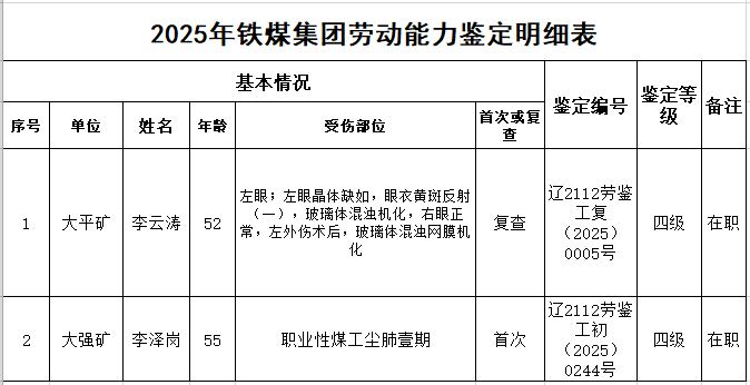 2025年6月鐵煤集團(tuán)勞動(dòng)能力鑒定結(jié)論公示
