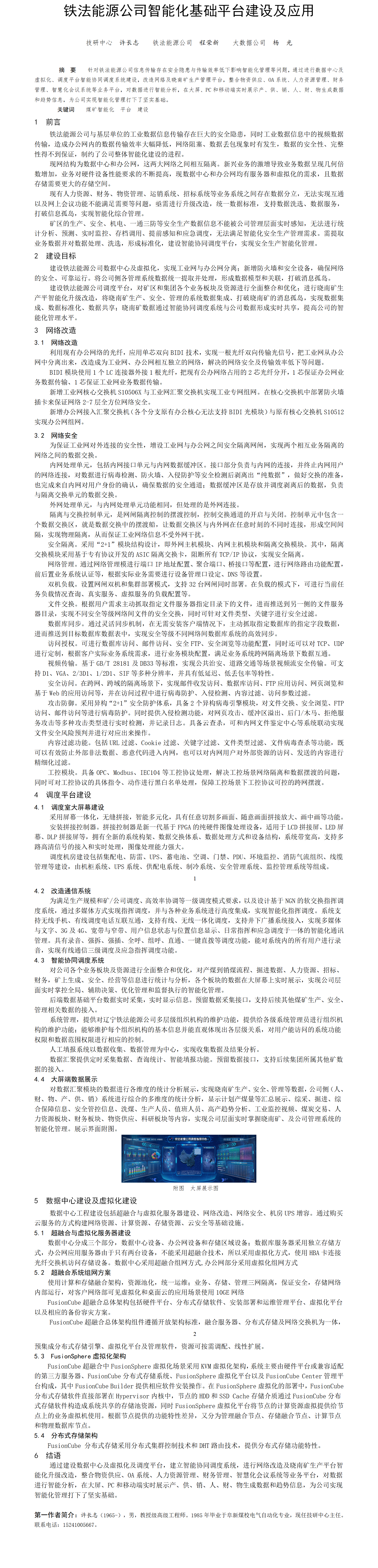 第60屆等級獎論文---鐵法能源公司智能化基礎平臺建設及應用