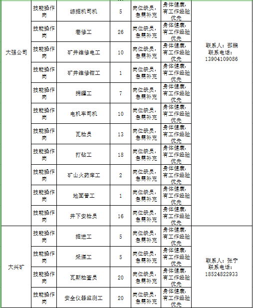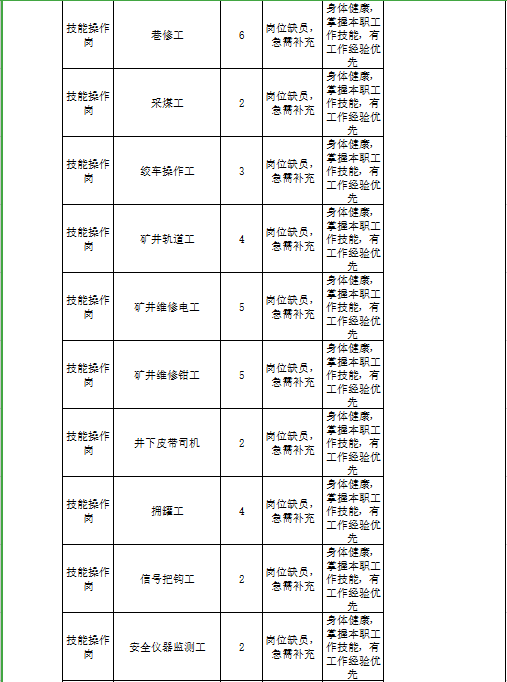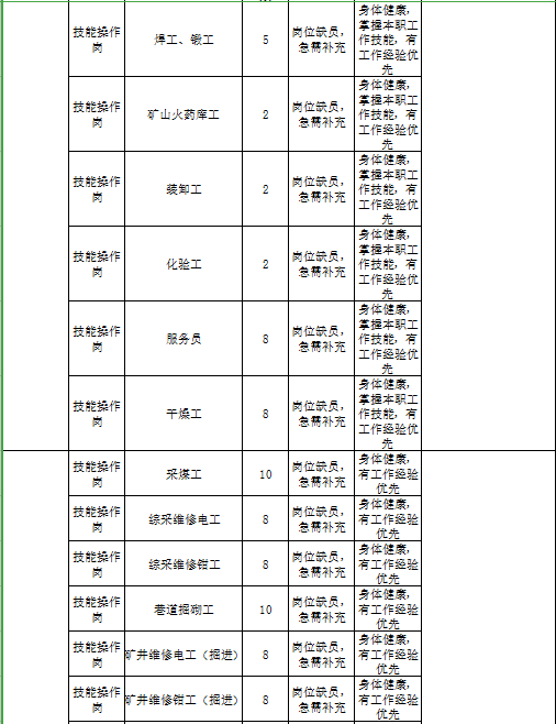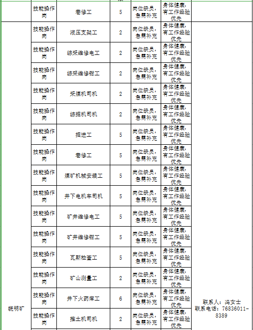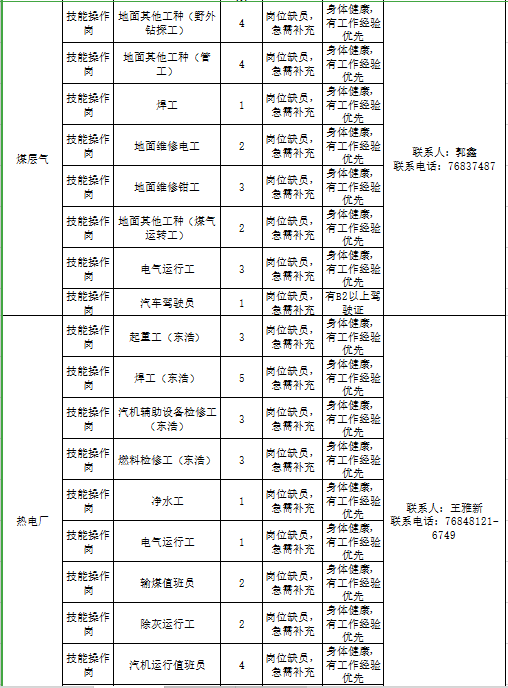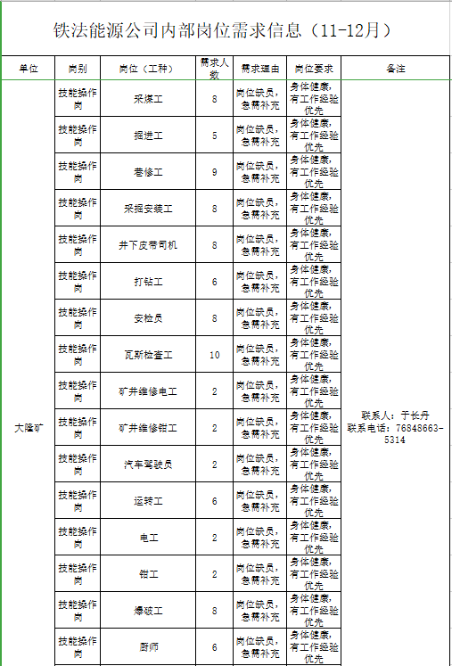 鐵法能源公司內(nèi)部崗位需求信息(11-12月)