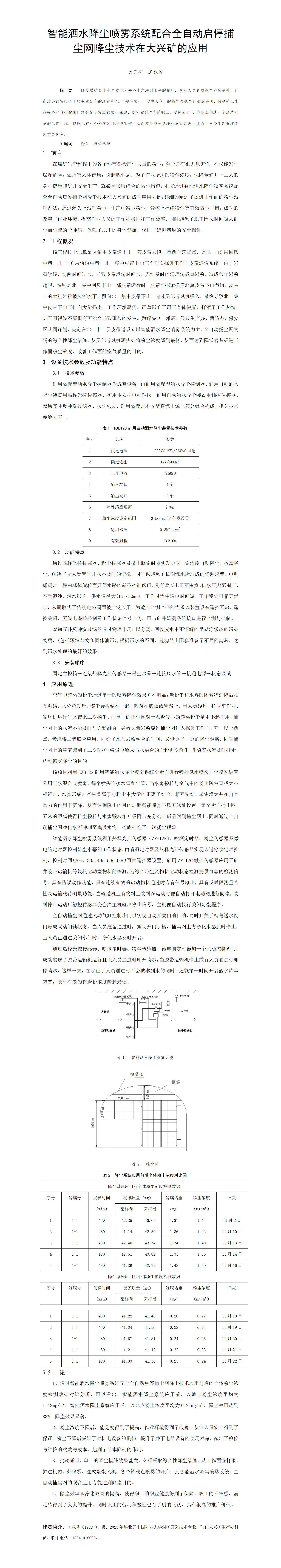 第61屆等級獎?wù)撐?--智能灑水降塵噴霧系統(tǒng)配合全自動啟停捕塵網(wǎng)降塵技術(shù)在大興礦的應(yīng)用